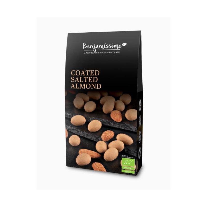 Solené, pražené mandle obalené v mléčné čokoládě Slaný karamel a mandle, Bio