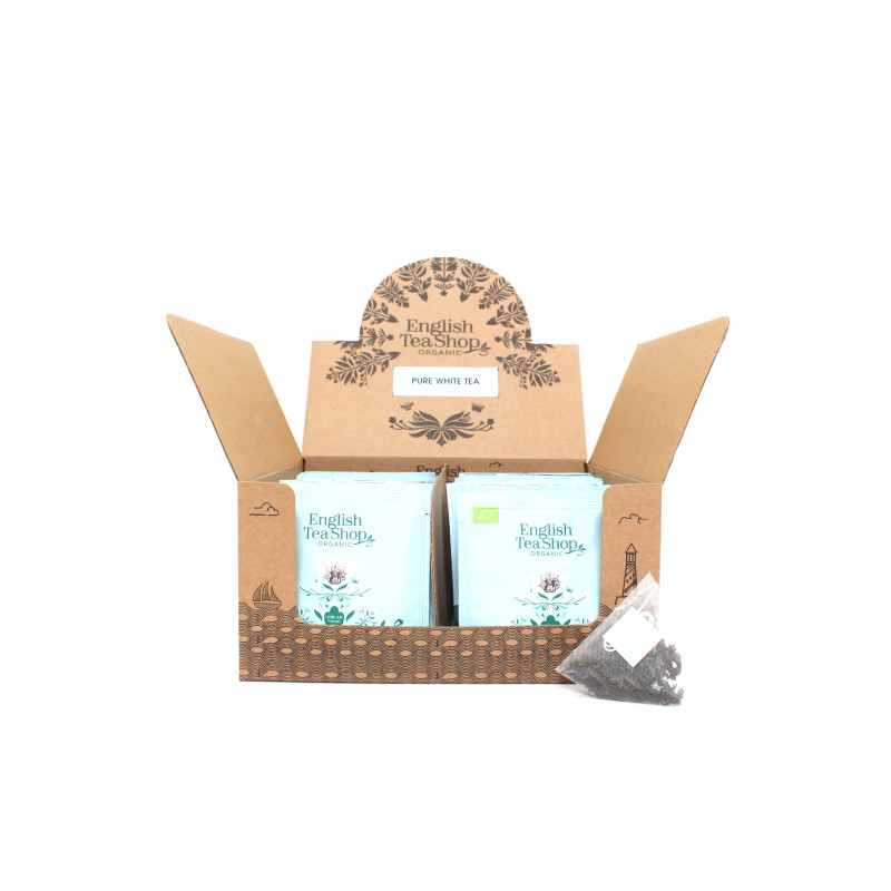 Bio bílý čaj English Tea Shop je oblíbený pro svou jemnou, nasládlou chuť a příjemně navodí pocit relaxace. V šálku má světlou, zelenou barvu a svěží aroma.
