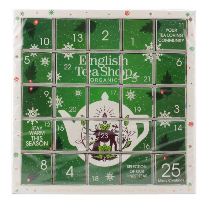 Nádherný zelený adventní čajový kalendář vás okouzlí nejen svým designem, ale hlavně voňavými a lahodnými čaji v bio kvalitě. Vánoce jsou svátky, kdy neustále mlsáme. Skvělým způsobem, jak si užít adventní kalendář "zdravěji" je vyzkoušet některý z čajových kalendářů. A tento zelený od English Tea Shop je velmi dobrá volba :)