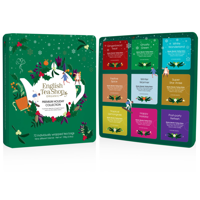 Prémiová vánoční zelená kolekce od značky English Tea Shop obsahuje kvalitní čaje v bio kvalitě. Sada je vhodná jako dárek pro vaše blízké a pro milovníky čaje. Čaje jsou baleny v krásný a praktických sáčcích , tudíž si je můžete vychutnat kdykoliv a kdekoliv.