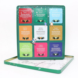 V sadě Prémiová vánoční zelená kolekce je devět druhů čajů. Díky skvělé kombinaci čajů, bylin a koření vás potěšení šálek skvělého čaje a navodí příjemnou vánoční atmosféru. Užijte si chvilku jen pro sebe.